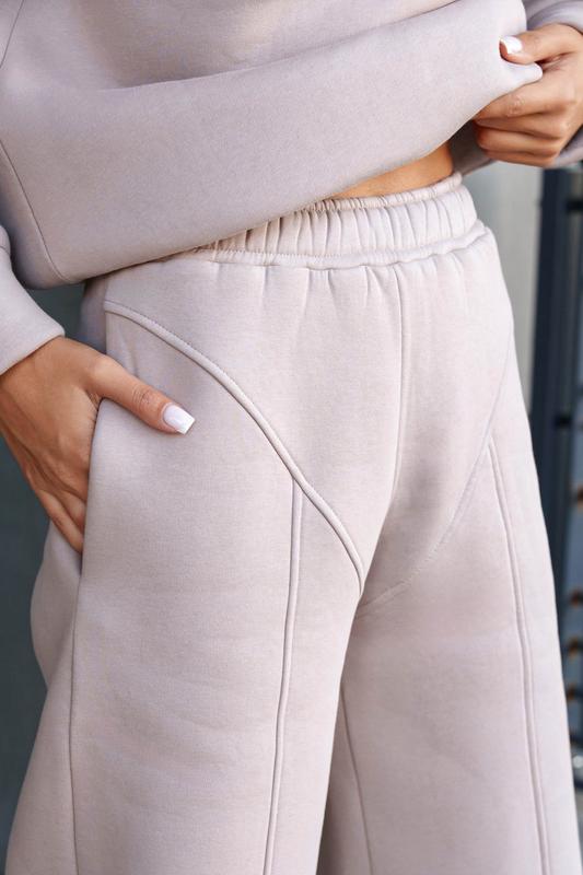 Брюки в стилі Casual з теплого футера на флісі відмінною якості (не кашлатиться). Брюки оздоблені фігурними підрізами по переду, та декоративними клапанами на спинці.