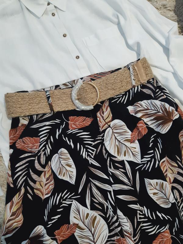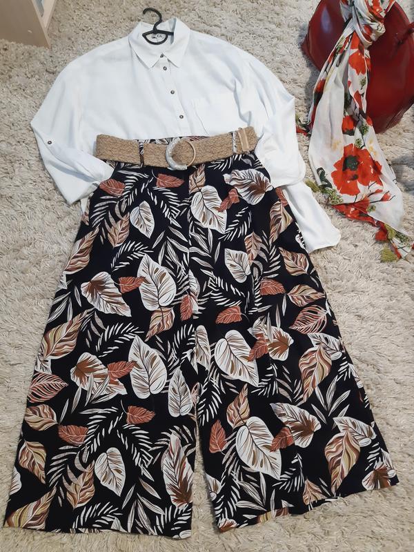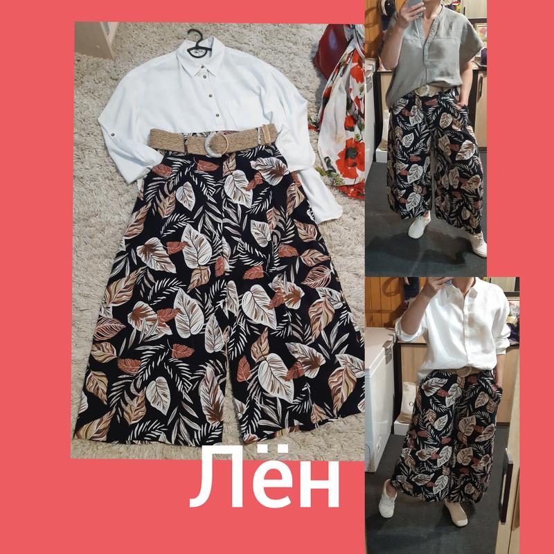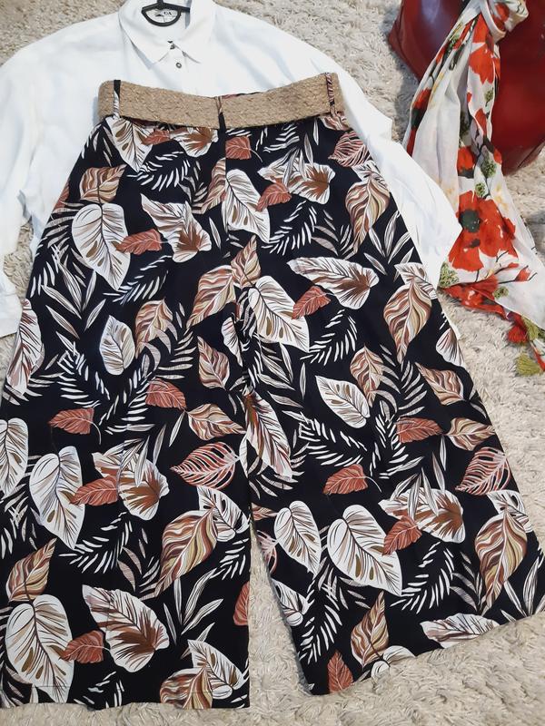 Стильные льняные широкие брюки кюлоты/, палаццо в принт, высокая посадка, есть карманы. Стан идеален.