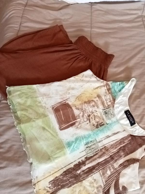 Шикарні брюки кюлоти. Розміри на фото. Бавовна. Талія на резинці. Тягнеться до 57 напівобхват. топ з паєтками на підкладці.