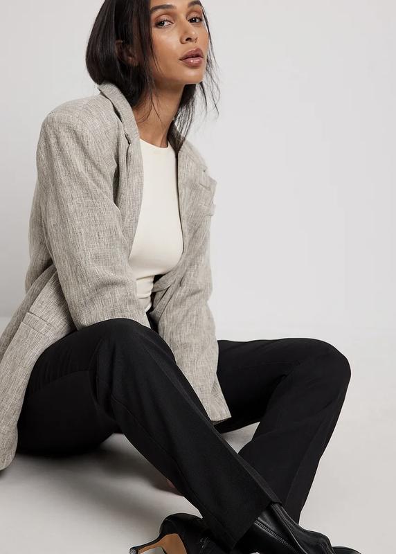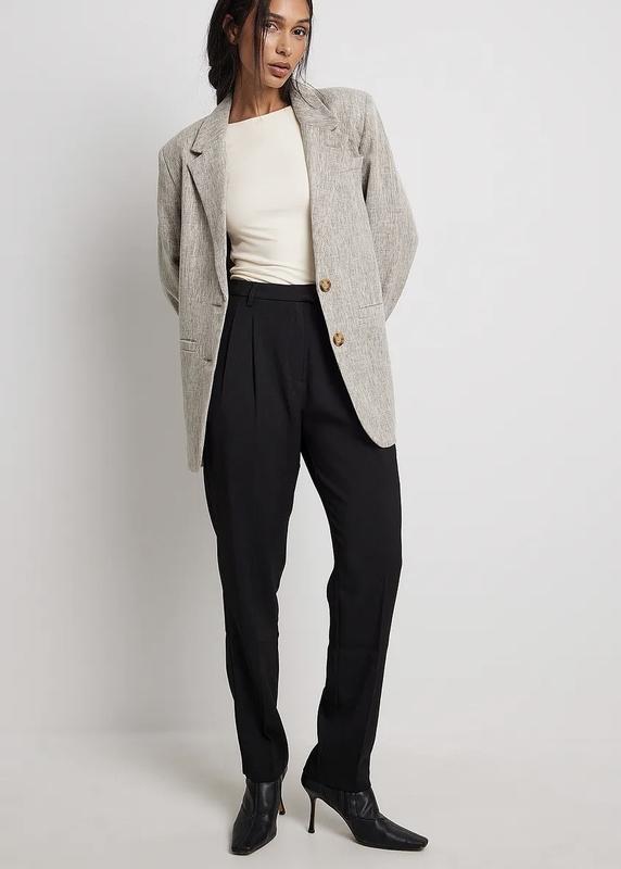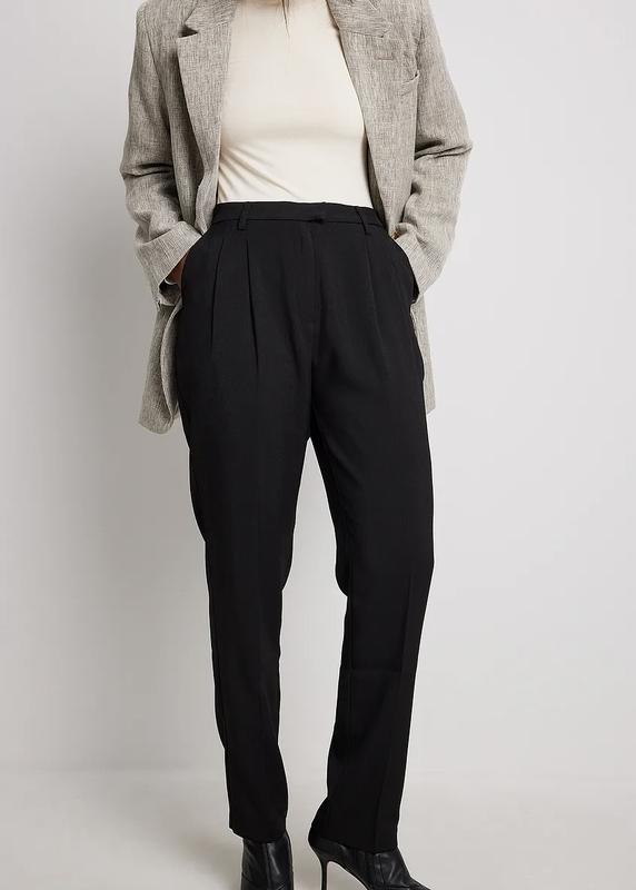 костюмные брюки формы галифе имеют завышенную талию, плиссированный дизайн, 2 передних кармана, задние ложные карманы и укороченную длину. Эти брюки поставляются черного цвета. Указан размер 36 (c-m)