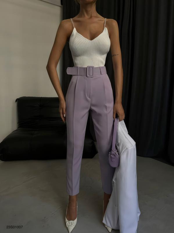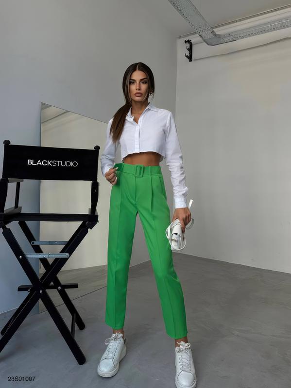 Элегантные классические брюки, пояс в комплекте. Высокая посадка подчеркнет талию и визуально удлинит ноги. Безупречный крой, отличное качество.