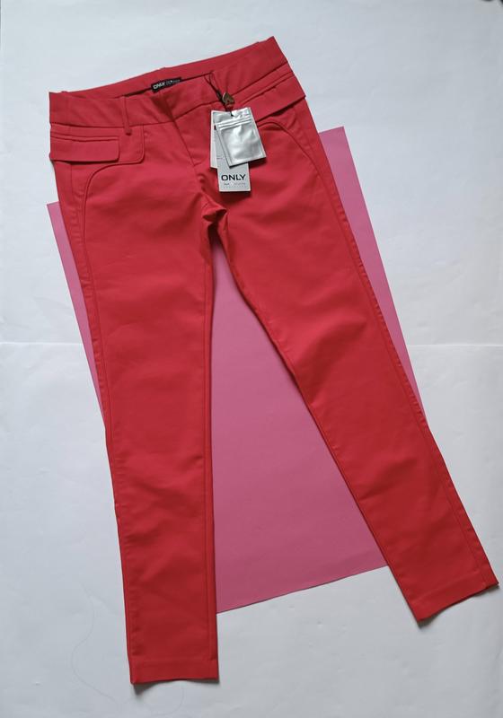 Супермодні червоні брюки ONLY. У наявності. Розмір на бірці 28/М/ наш 46й розмір одягу. Але за вимірами БІЛЬШЕ підійдуть на 25-26/xS-S/ це наші 42й-44й розміри одягу. Матеріал трохи тягнеться, не просвічує. Склад матеріалу вказаний на кітайській( Довжина 94/74,5 Посадка 20/32 Напівобхват поясу 38 Напівобхват стегон 43,5-48(48 вже в натяжку) Ширина штанини зверху 26,5/ знизу 15 Фото на собі/комусь/манекені не роблю. По ваших параметрах речі не підбираю. Торгу/обміну/повернення немає! Річ нова. ".