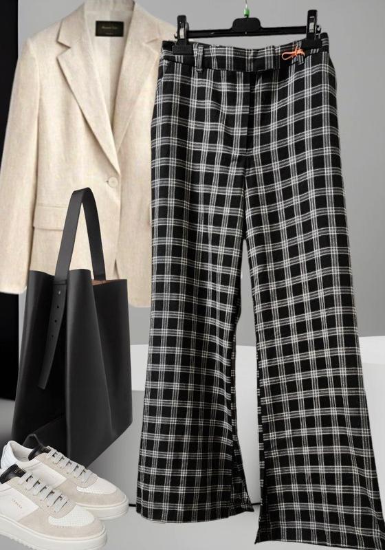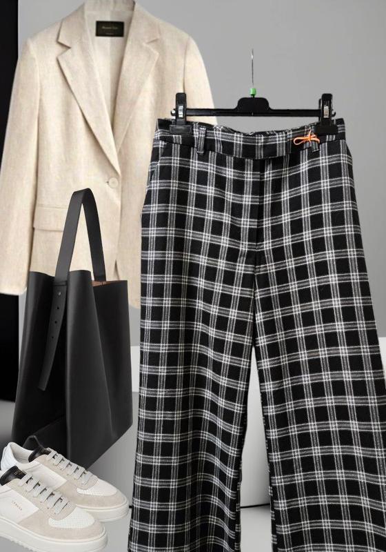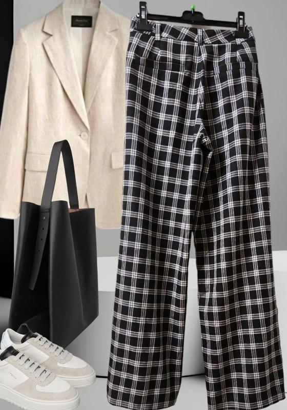 Брюки черные широкие в клетку Next с внутренним разрезом