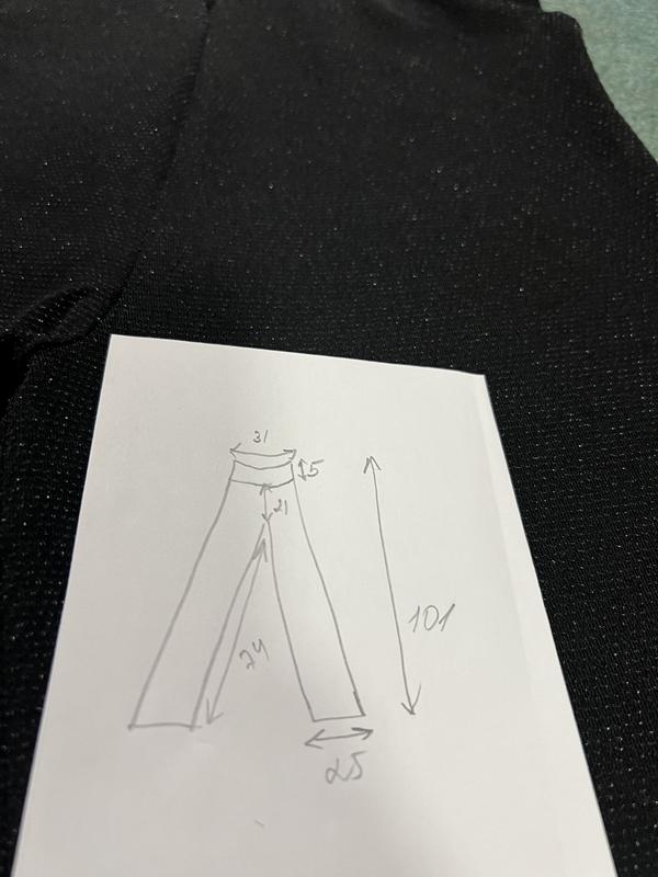 Замеры на фото, очень сильно тянутся, хоть размер указан S, но они очень красиво сядут и на М. Легкие, не мнутся