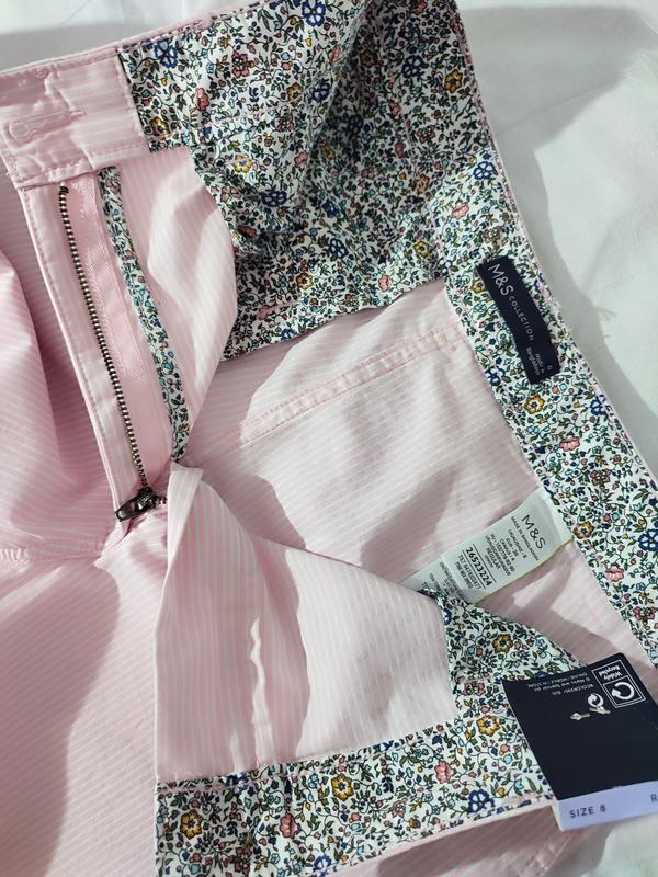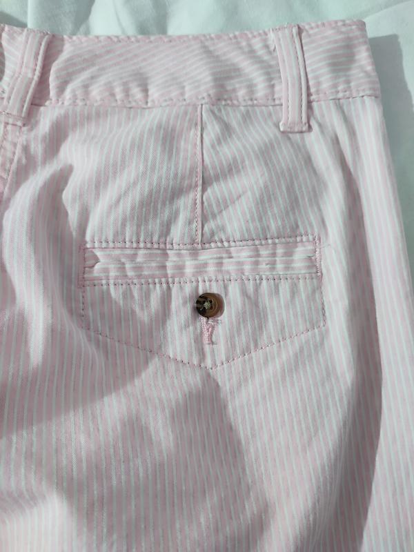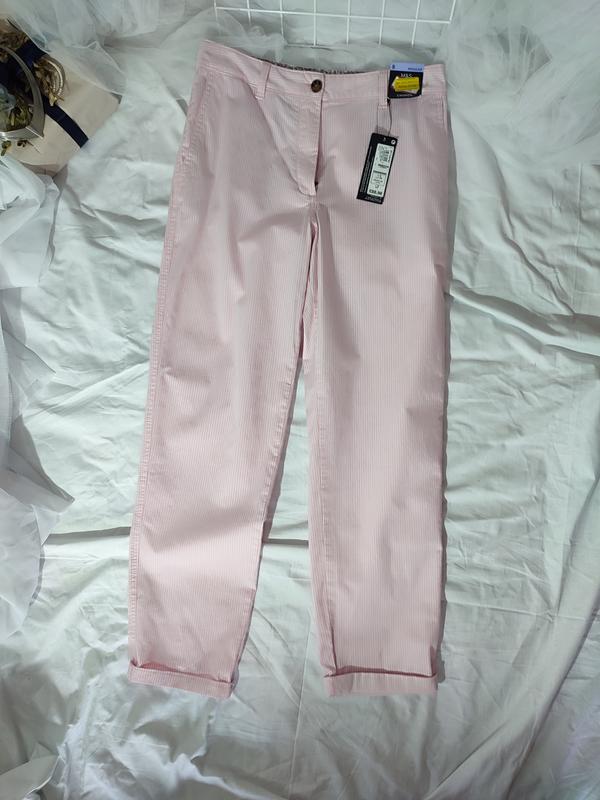 Свободный крой, металлическая молния защелка и пуговица, два наклонных боковых кармана, и один задний карман на пуговице, к низу зауженные, тянутся