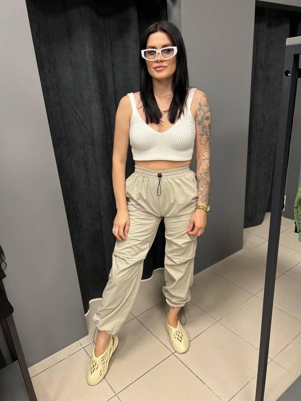 🔥🗝Крутые женские штани🗝🔥Размеры s-xlМатериал :100% коттон, ткань - матовая плащевка, низ штанины на резинке с кулиской..Артикул 003zhshЗамеры S-пояс-32, бедра -56, длина-107М-пояс-34, бедра -57, длина-108Л-пояс-35, бедра -58, длина-109ХЛ-пояс-37, бедра -61, длина-110