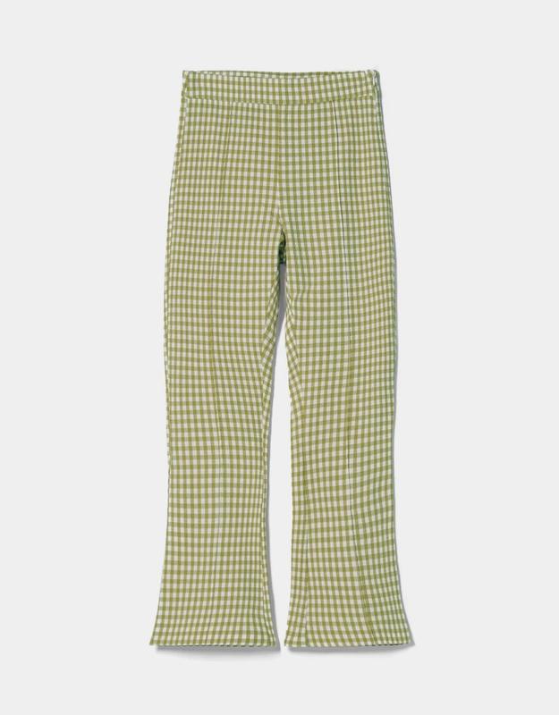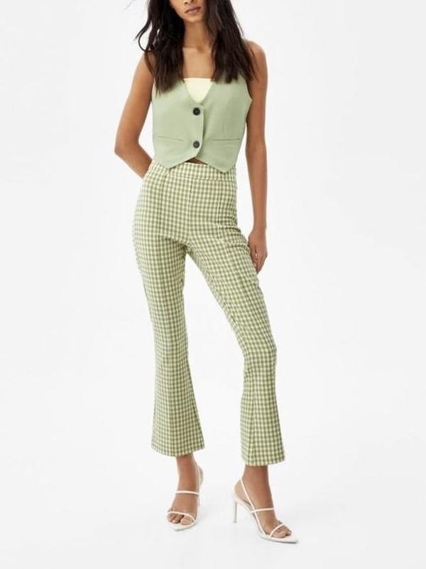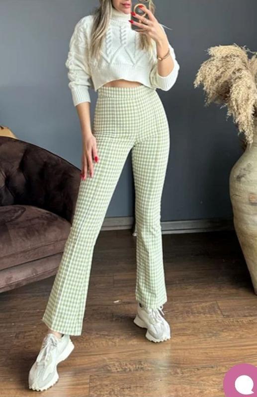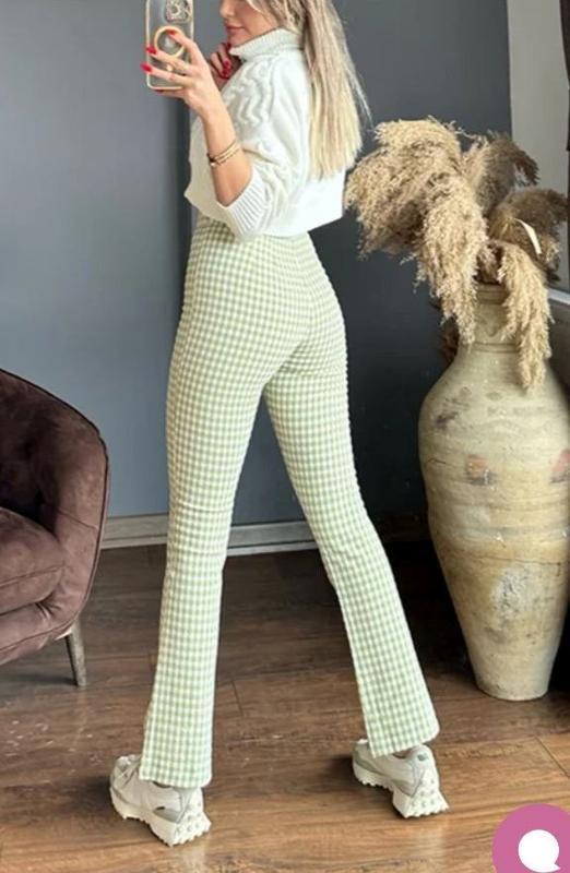 Широкие брюки клетка брюки хлопок брюки клеш зеленые брюки брюки брюки коттон прямые...