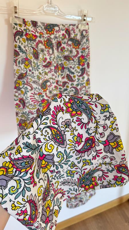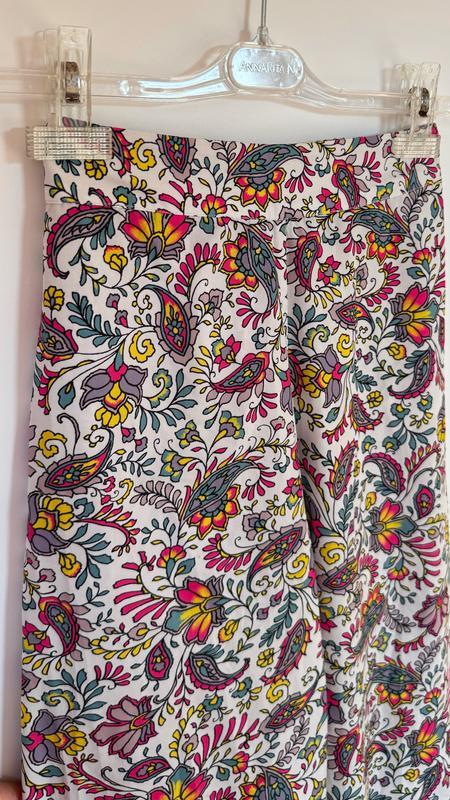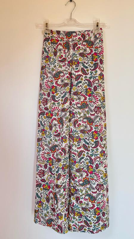 Кружевные палаццо в прекрасный цветной орнамент. Удобные, практичные,талия на резинке. Подойдет на размер С и свободно на размер М.Made in India