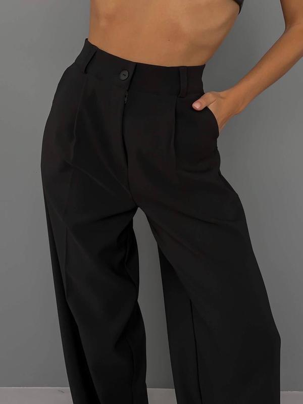 Брюки - палаццо женские льняные, летние, с карманами, однотонные, черные