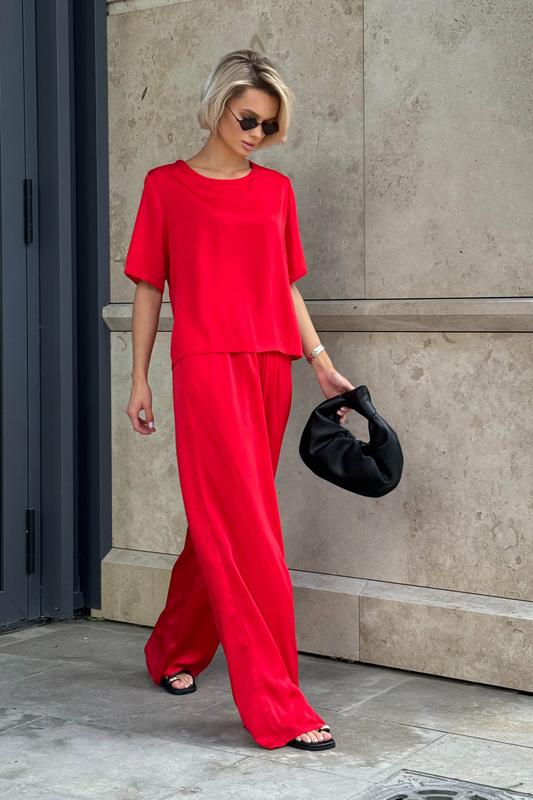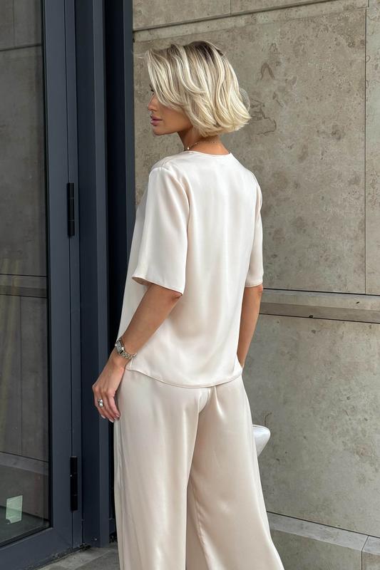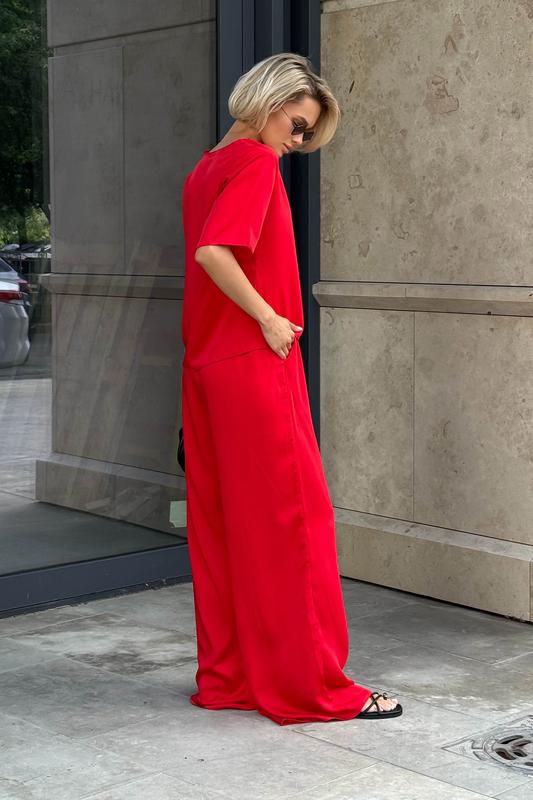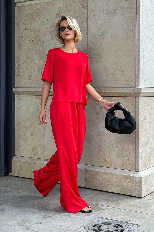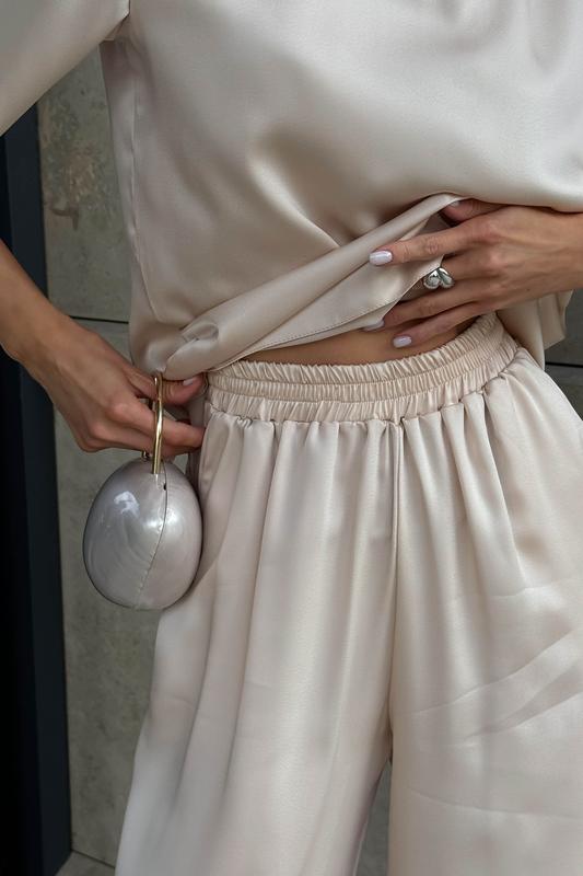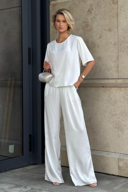 Летние широкие брюки прямого кроя из воздушной ткани. Модель дополнена удобными карманами по бокам.