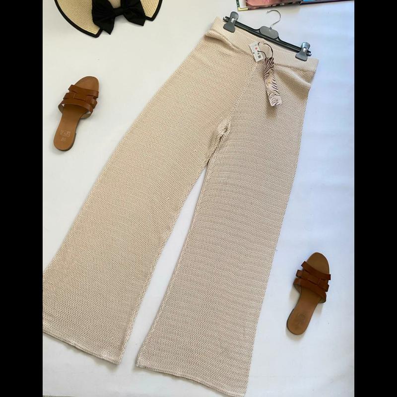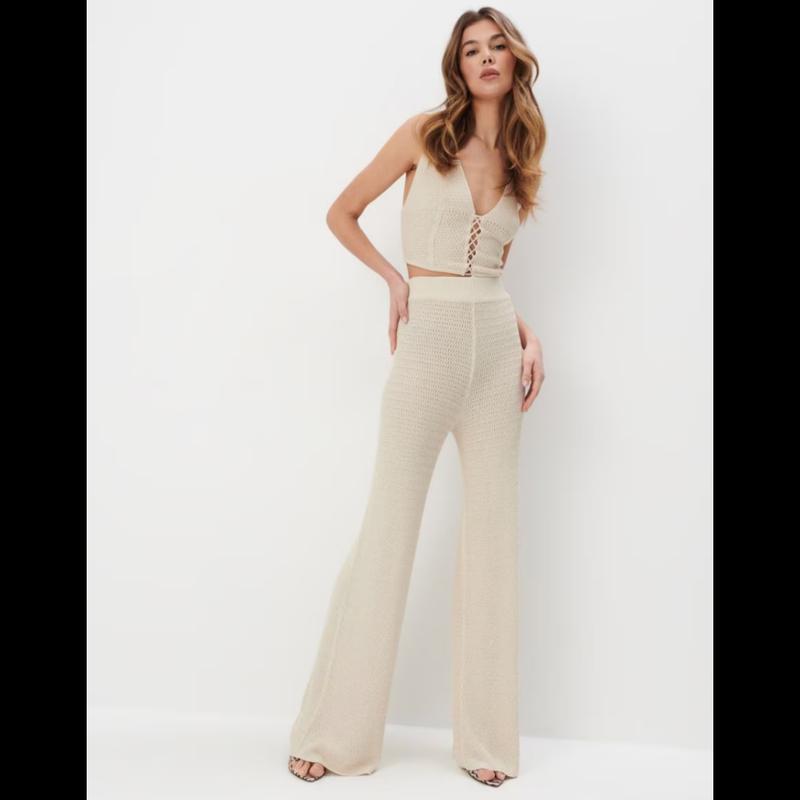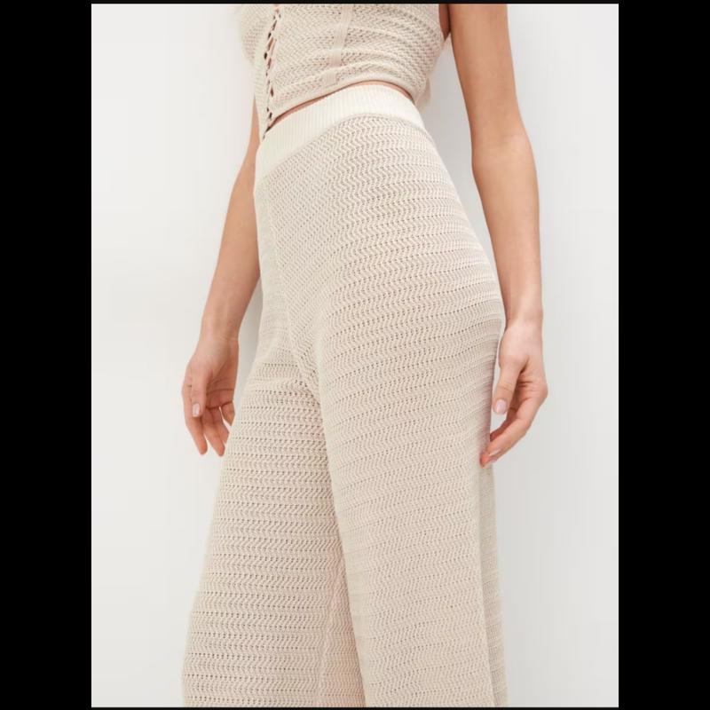 Одна из самых топовых и востребованных моделей этого сезона - вязаные брюки Mohito бежевого цвета с широкими штанинами