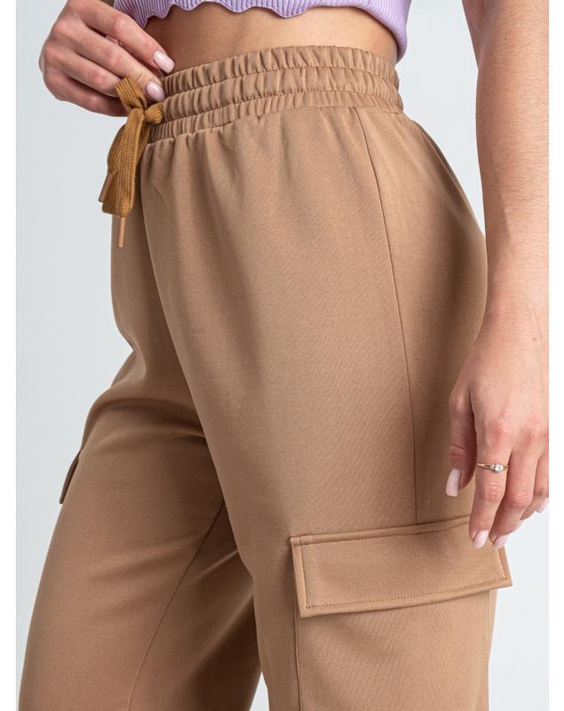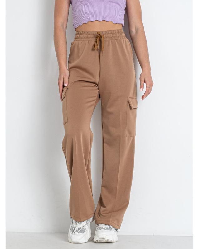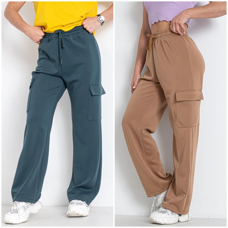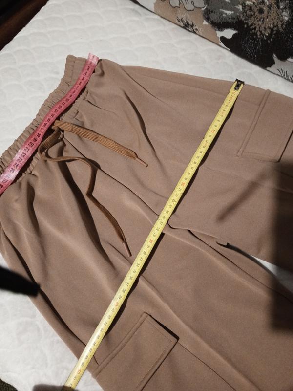 Брюки имеют снизу затяжки, поэтому могут носиться как палаццо, или как карго (фото в сиреневой расцветке - пример как будет сидеть, если затянуть).