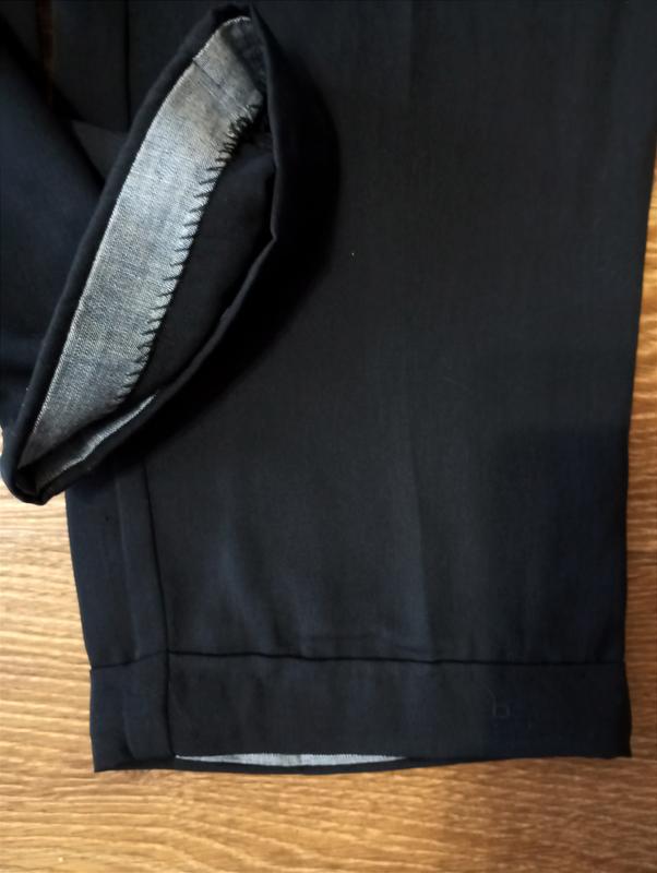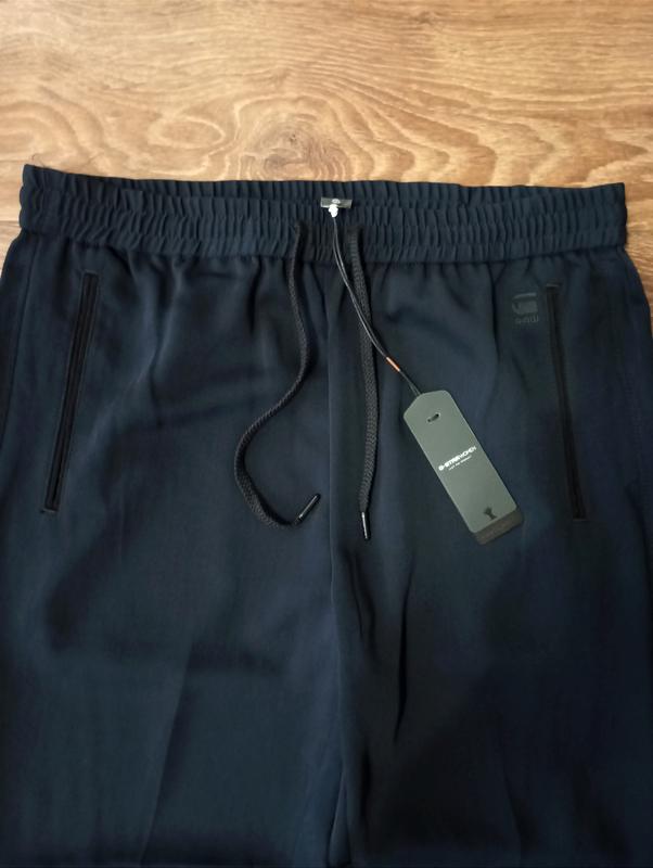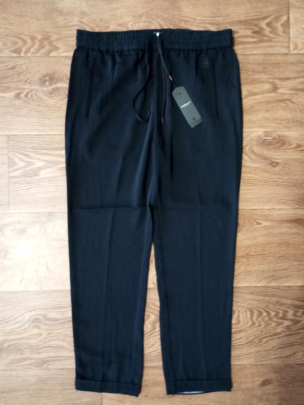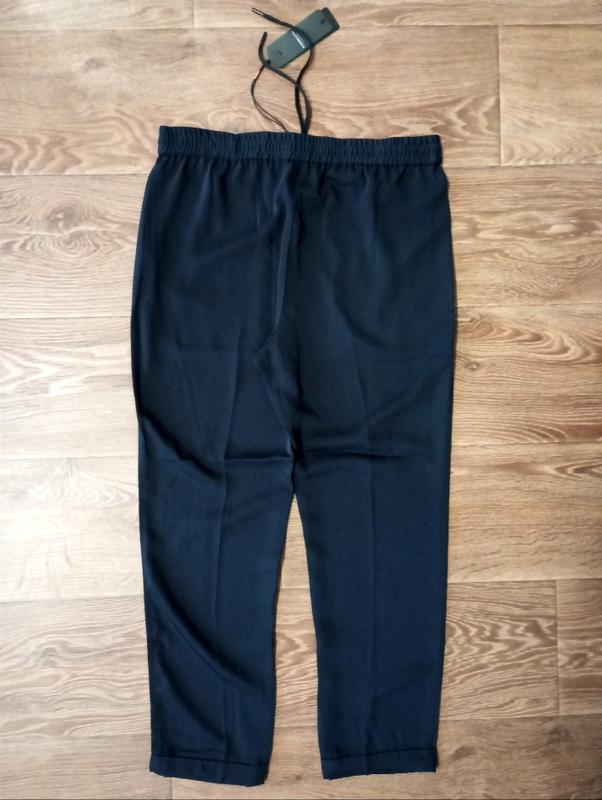 Новые, шикарные брюки, без каких-либо дефектов. Цвет темно-синий. Ткань дышащая, средней плотности, строгится, отличного качества. Шикарный пошив. Пояс резинка + действующий шнурок, карманы (сшитые, следует расшить) у кармана логотип бренда, низ штанины манжет. Носить конец весны, лето, начало осени.