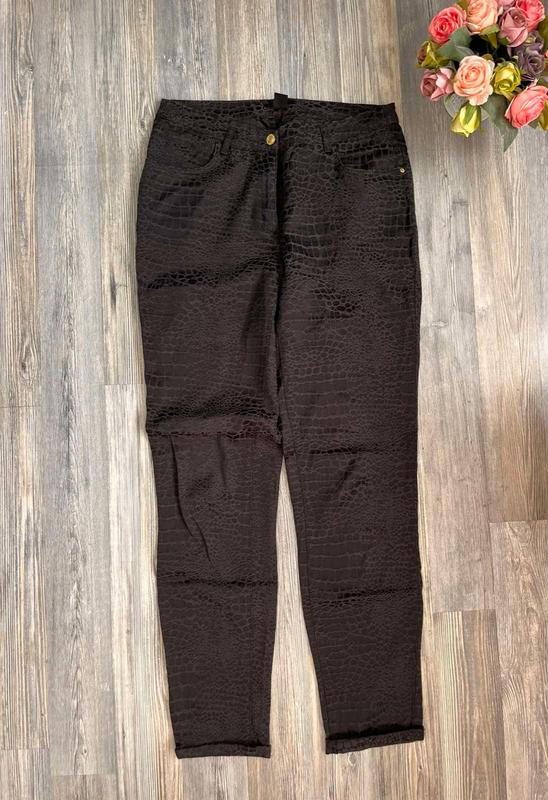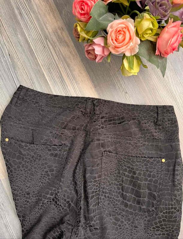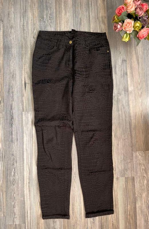 Брюки с тиснением под кожу рептилии, высокая посадка, зауженный фасон.Размер наш 46 /48ЗамерыДлина 106смШаг 80смПот 41смПоб 52см