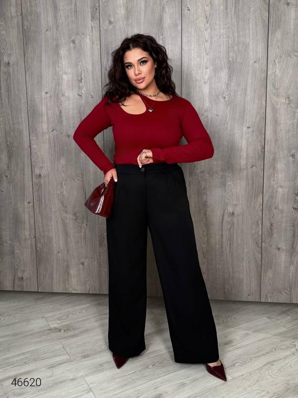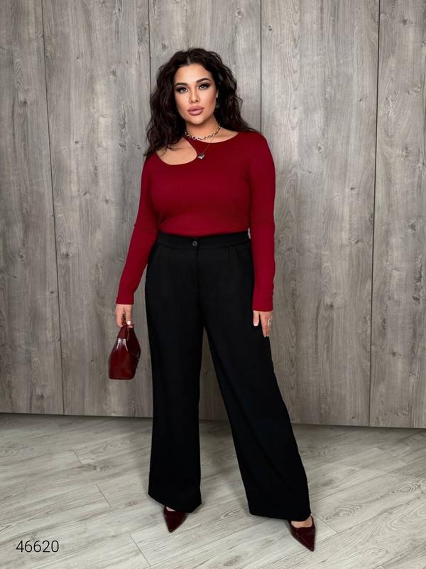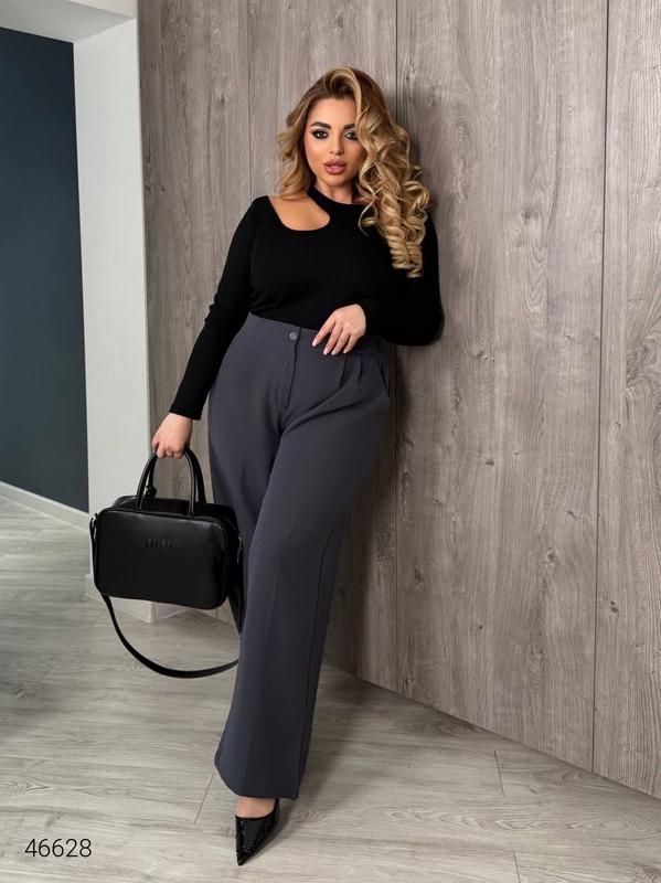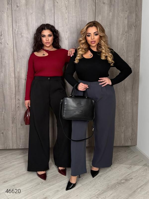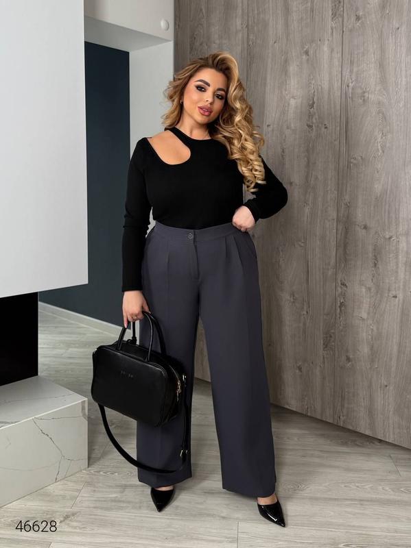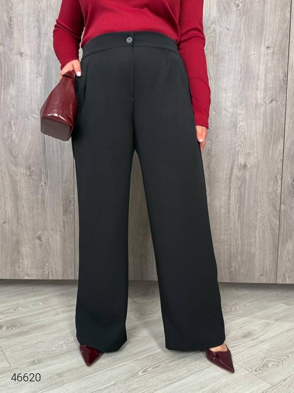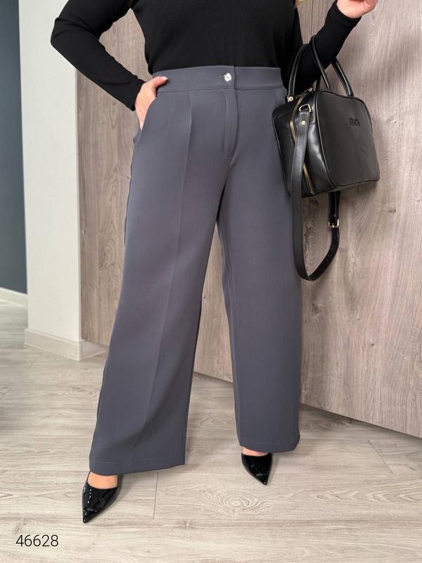 Брюки женские. Широкие брюки с высокой посадкой. Есть карманы, застегиваются на пуговицу и молнию.