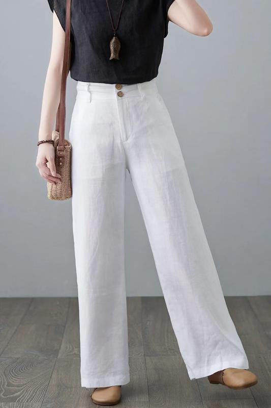 Літні брюки з льону не просвічують на котоновій підкладці bianco