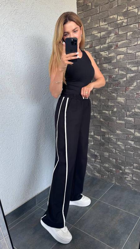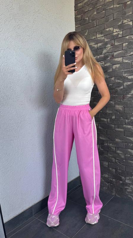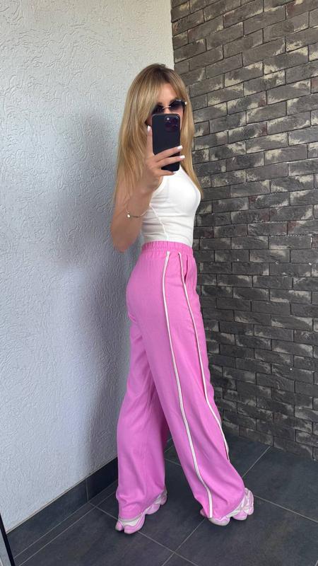 Брюки свободного кроя, талия на резинке, с двумя карманами