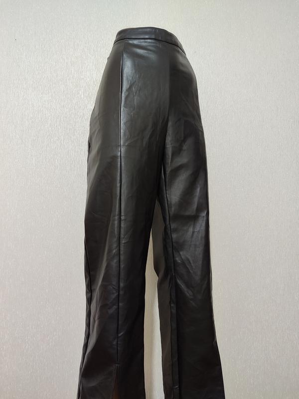 Секонд высокого класса, стильные и качественные вещи известных брендов. Классные брюки из искусственной кожи в идеале, с биркой, высокая посадка, разрезы внизу, застежка- молния сбоку, почти не стрейч. Заміри на фото.