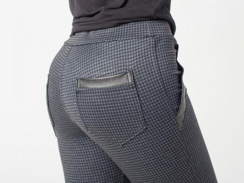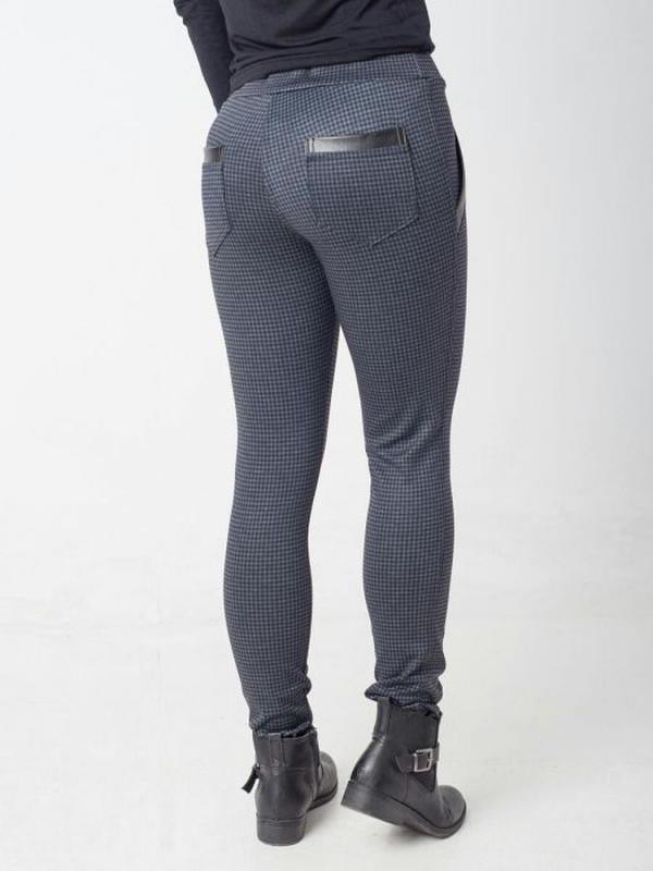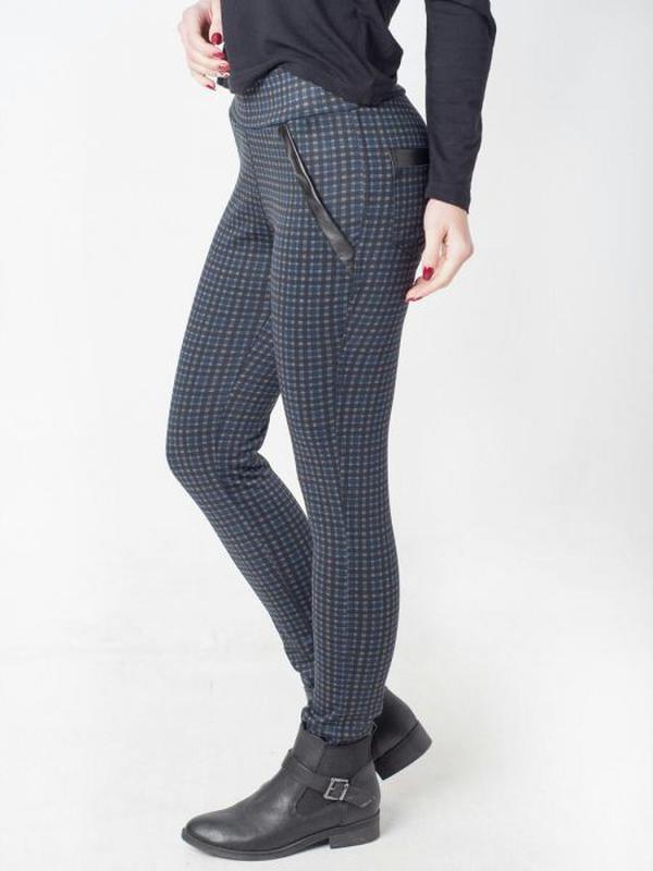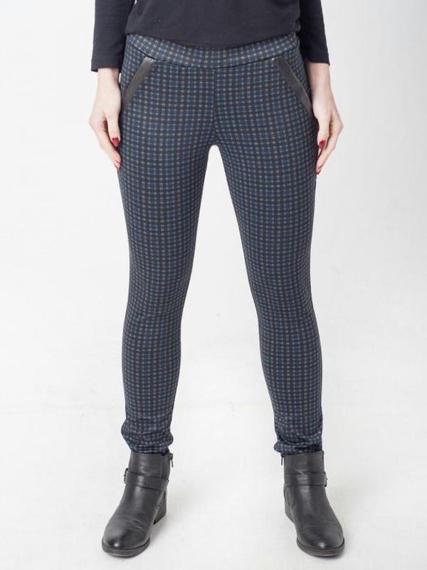 Лосины из плотного трикотажа алекс. Трикотаж алекс являет собою плотный, непросвечивающийся материал. Ткань в клетчатый принт и достаточно эластичная, не подверженная деформации или растяжению. На карманах есть вставки на карманах из кожзама. Отлично садятся по фигуре, прекрасно утягивают в общем и в частности в области животика за счет широкой резинки ― 6 см. Довольно высокая посадка позволит Вам чувствовать себя комфортно при любом движении, спина остается закрытой также при приседании.