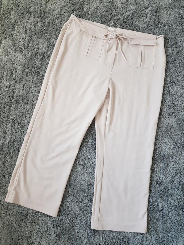 Укорочені льняні брюки мокко, хакі, беж, молочний, голубий, синій, чорний 48-50,52-54,56-58