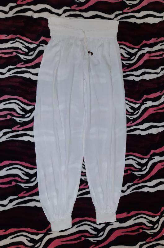 Лёгкие, полупрозрачные летние штанишки от PIAZA ITALIA, размер С-М.В талии и штанины внизу на широкой резинке, в резинку на талии вшита стяжка.Одеты один раз,в идеале,после химчистки. Покупала в официальном магазине за границей.