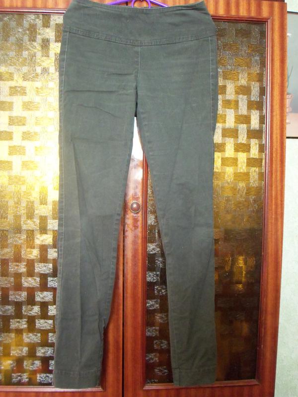 Брюки красивенного цвта под мокрый асфальт с широким утягивающим поясом. Очень приятная бархатистая ткань. Застежка молния сзади по центру. Состав: 97% хлопок, 3% эластан.
