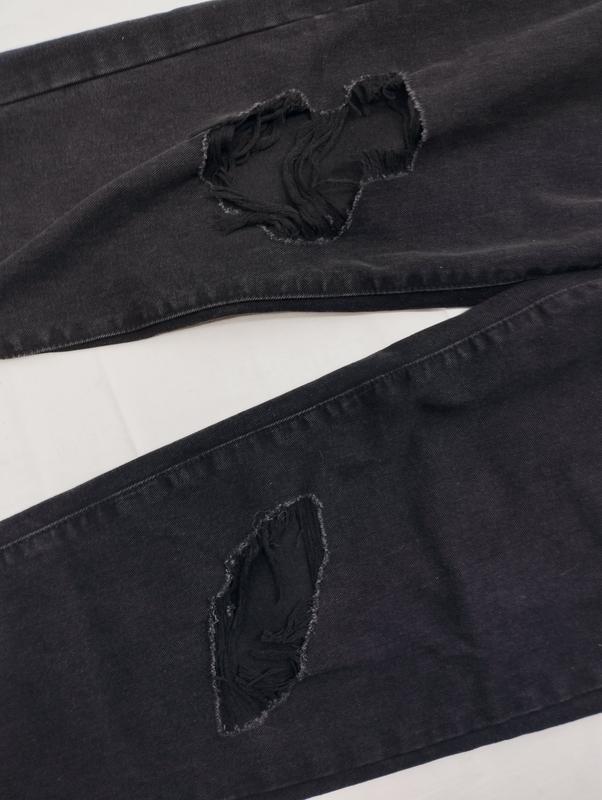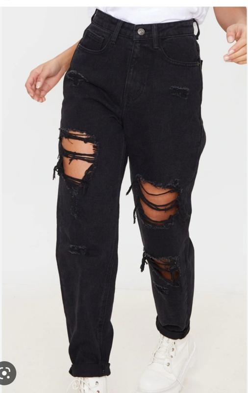 Черный джинсы рваные mom бойфренды высокая посадкаДлина 115 по внутринему шву 80 смТалия 38 смБедра 58 смПосадка 34-44 смШирина штанин 35-21 см