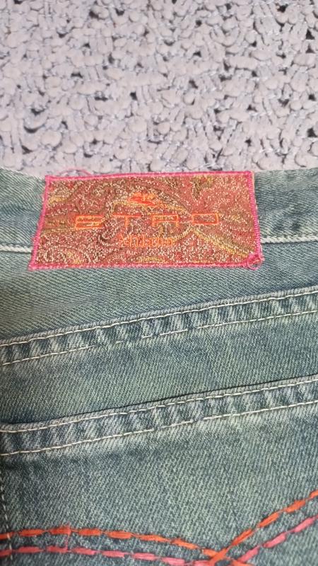 джинсы от итальянского бренда etro milano,темно голубые с зеленоватым отливом,посадка средняя пот 39-40поб 50глубина посадки впереди 22,сзади 34длина 98оплата на карту приват или наложеный платеж по предоплате на доставку