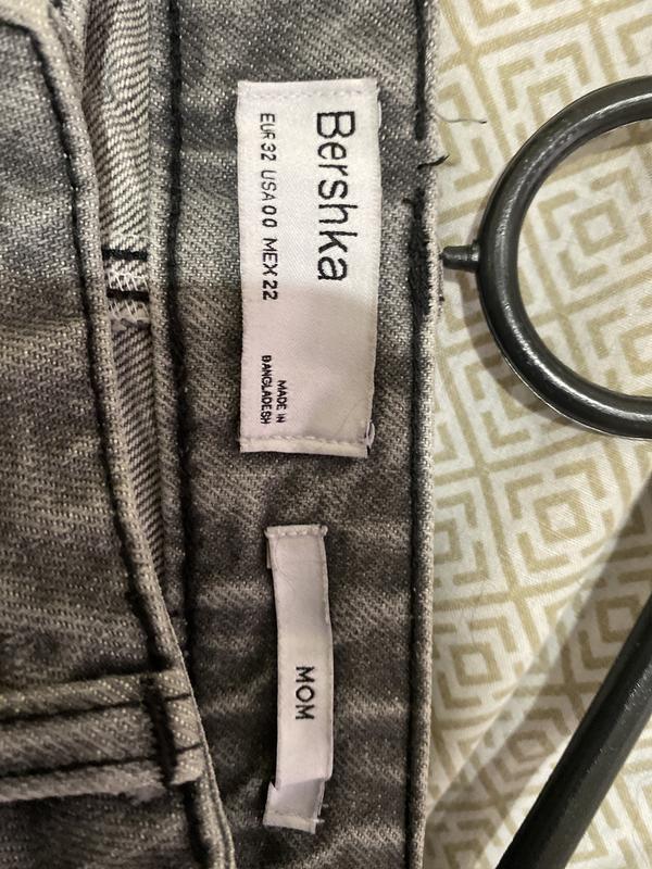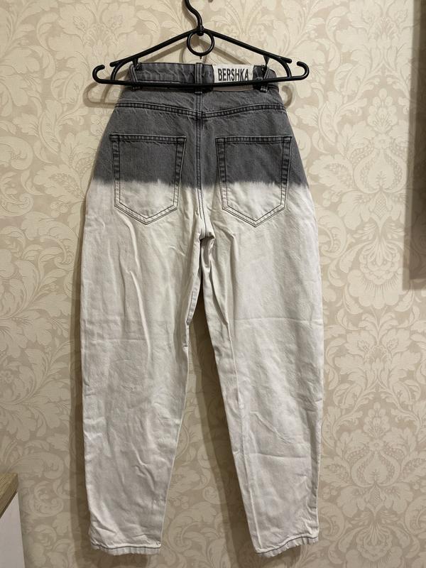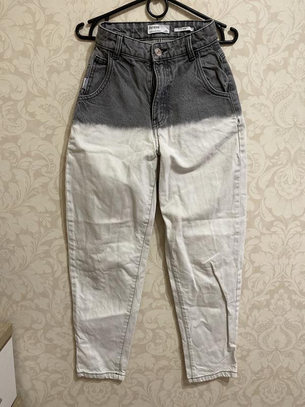 Модные джинсы-момсы bershka с серой и белой штанинами