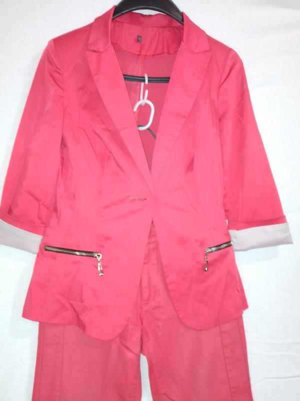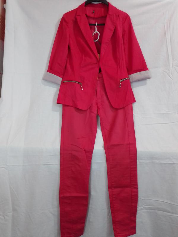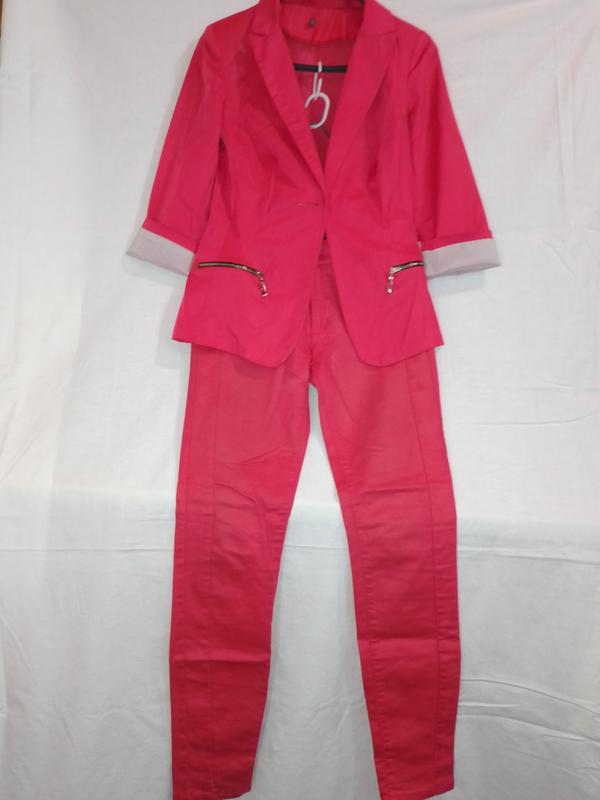 Стильный комплект коралловый брюки и пиджак костюм штаны стрейч под кожу фирменный набор