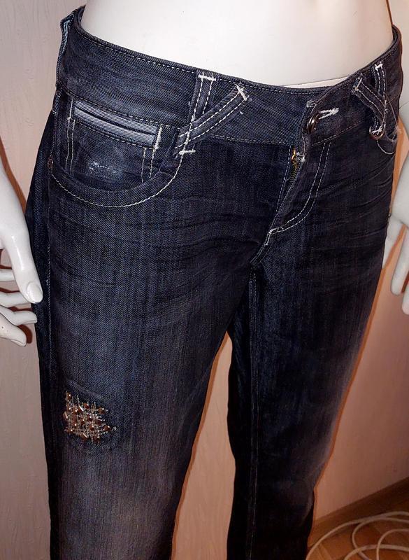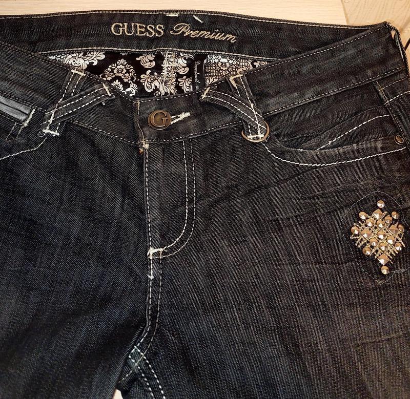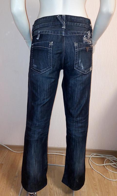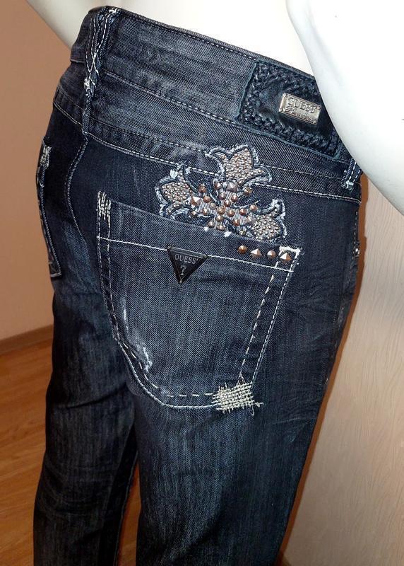 Бомбовые джинсы guess made in Mare. Фирменная гарнитура. Стиль 6 карманов. Украшены стразами спереди и сзади. Фирменная гарнитура. Сзади в районе пояса и на правом кармане фирменные железные вставки.