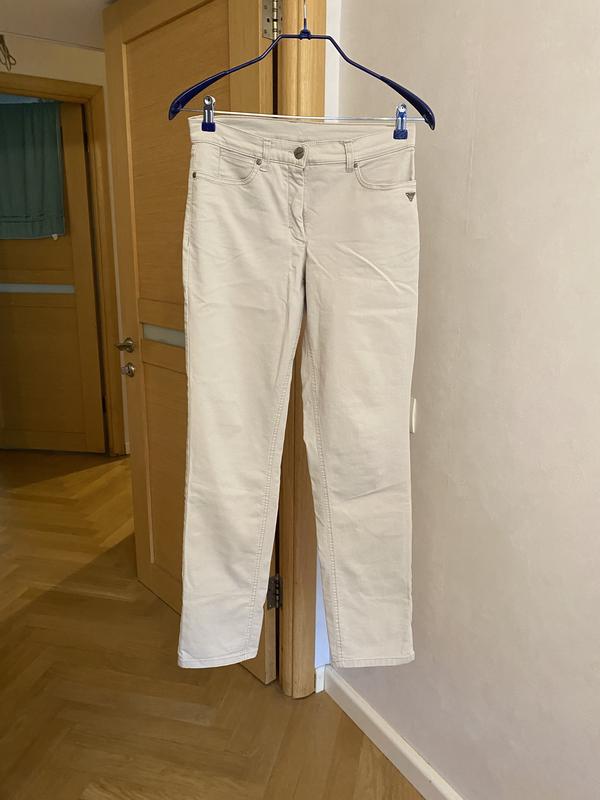 Джинсы бело-серого цвета, прямого кроя, немножко зауженные, не скинни, Laurie Rebecca, стрейчовые, ткань тянется. Размер 36, или S. В идеальном состоянии. Все замеры указаны в спокойном состоянии ткани. Полуобхват талии- 38, ПОБ- 50, длина внешней 103, внутренней стороны 79, ширина штанины сверху- 28, ширина штанины снизу- 17.