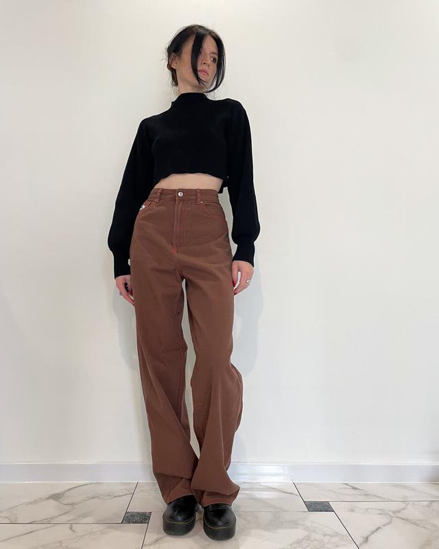 Широкие джинсы актуального коричневого цвета От H&M, в коллаборации с No FearWide-leg Посадка высокая Размер SДлина 110ПОТ 35ПОБ 54