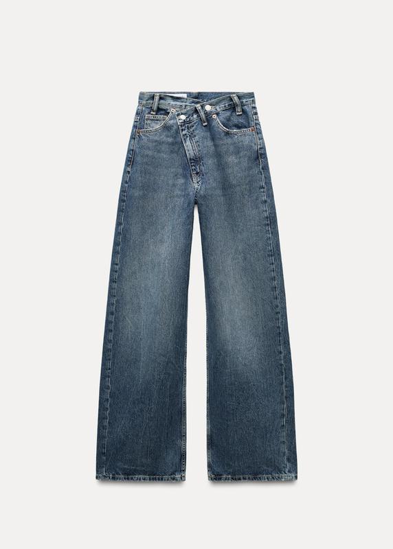 Джинси zara колір індиго 34 розмір сині блакитні з косим поясом широкі палаццо вільні