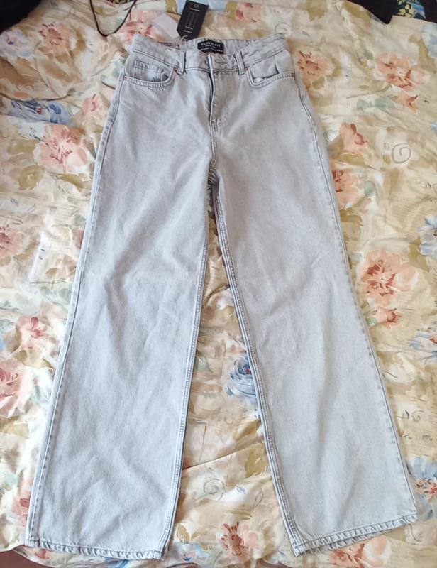 Серые, широкие джинсы, немного тянутся, полностью новые с бирками (не подошли к длине), 38 размер. Полуобхват талии - 37см Полуобхват бедер - 52см Длина - 110см
