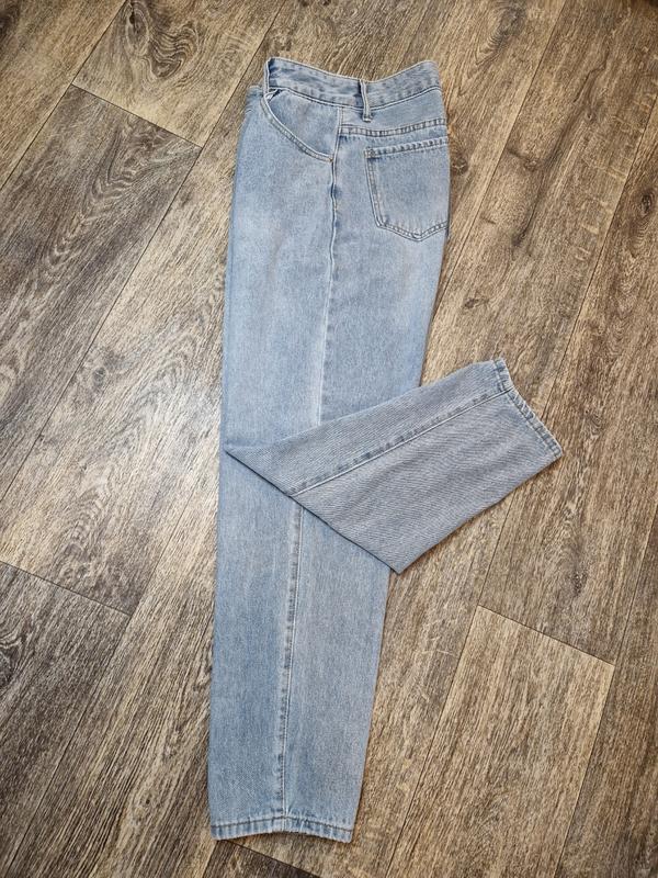 Светло-голубые джинсы МОМ от Shein, В размере М. Стан новых. Деним не тянется, плотный. Одетые на рост 165см, объем талии 76см, бедра 96см. Замеры: ПОТ 40 ПО стегон 55 Посадка 40 Длина по внешнему шву 102 Длина по внутреннему шву штанины 72 Ширина штанины вверху 33 Ширина штанини внизу 19 Отпрашиваю безопасной доставкой, или наложенным по подписке по пересылку