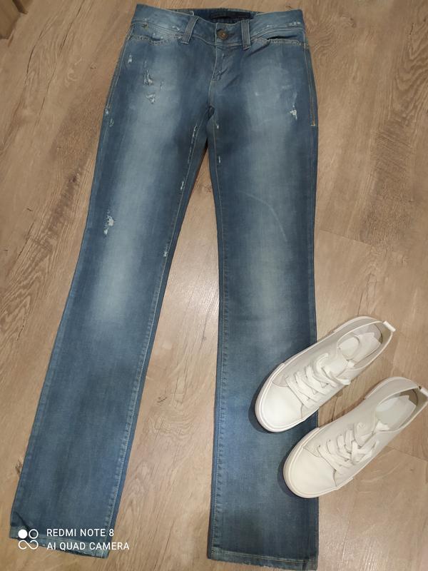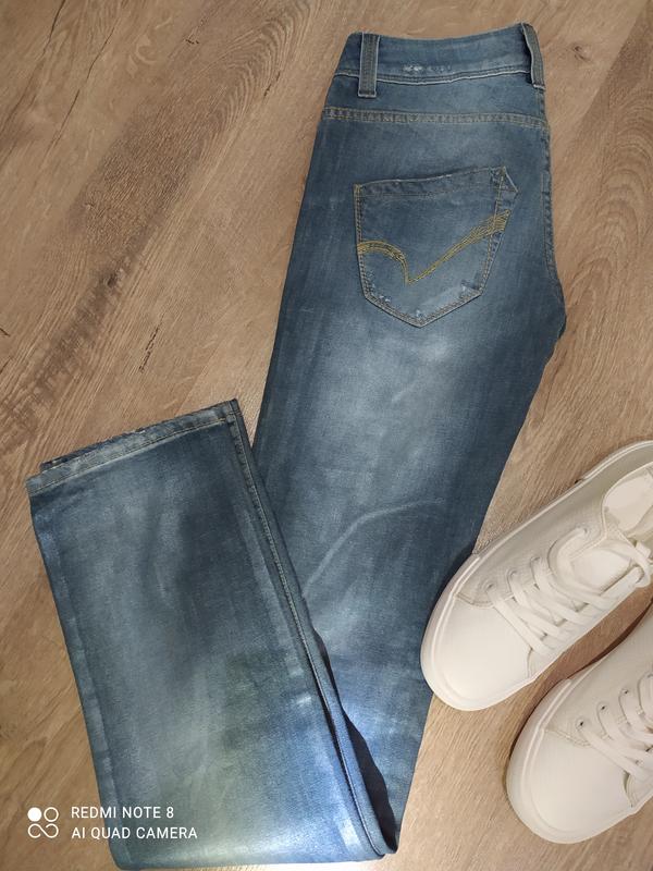 Женские джинсы в идеальном состоянии. Джинс с необычным пудровым напылением. Имеет серебристый отлив. Замеры: Длина 106см, длина по внутр. шву 85см, полуобхват талии 36см, полуобхват бедра 47см, полуобхват низ штанины 18см, подьем спереди 20см, полуобхват верх штанины 24см.
