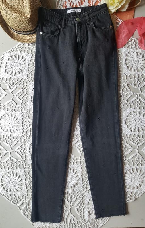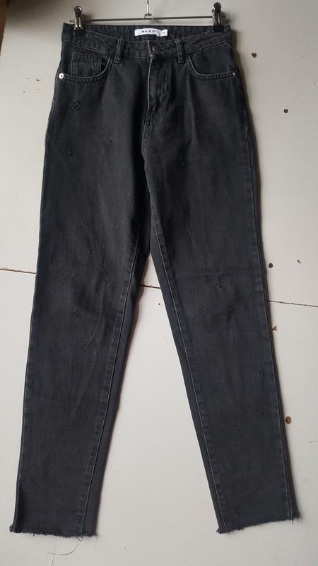 Джинсы с высокой посадкой, выбеленные с эффектом кислотной стирки. Без бусин!