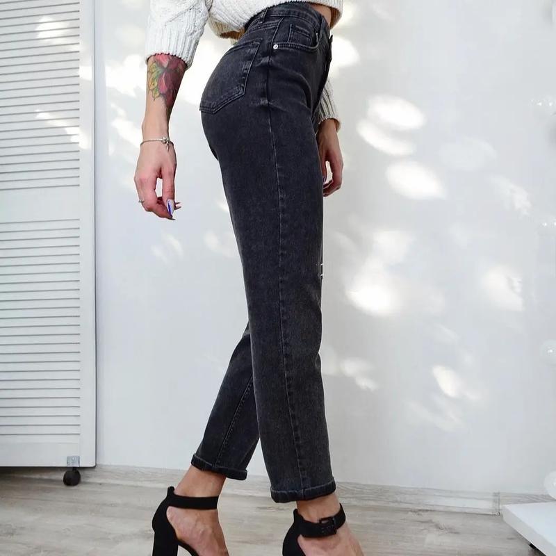 Джинси мом на флісі прямі висока посадка бойфренди жіночі