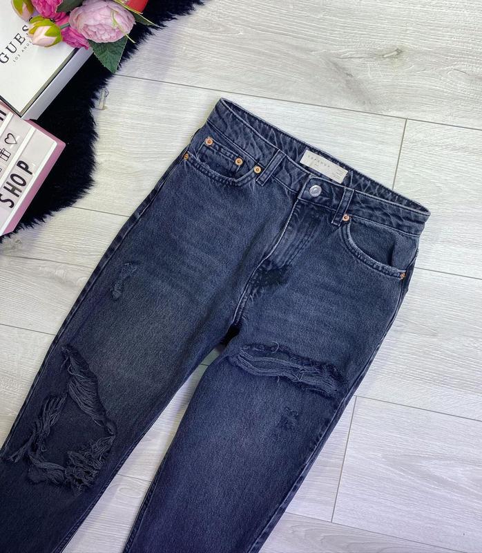 Черно-серые рваные джинсы mom от topshop