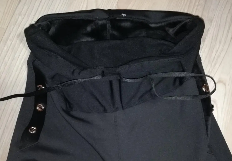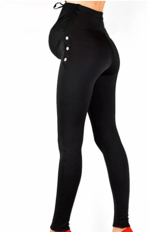 Леггинси для беременных украшены пришитыми пуговицами.