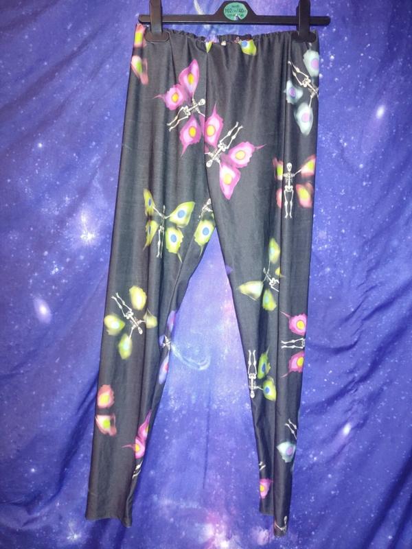 Неформальные гртические панк эмо оегинсы с скелетами бабочками insanity