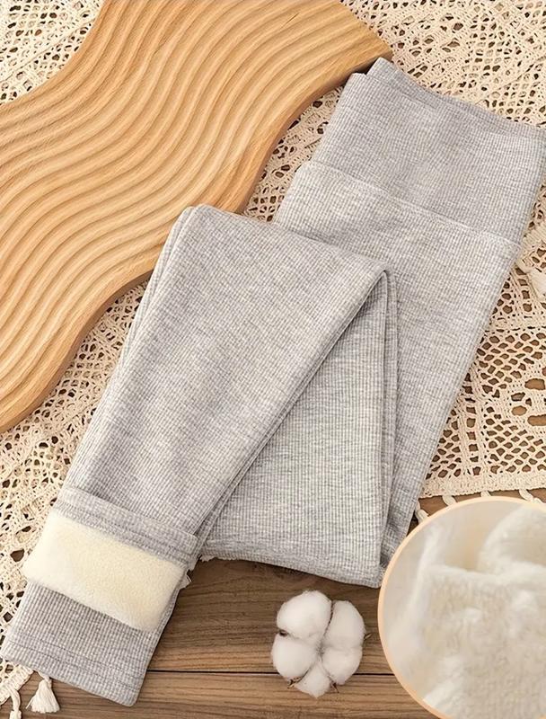 Теплые леггинсы в рубчик с плюшевым подкладом, высокая талия, эластичные