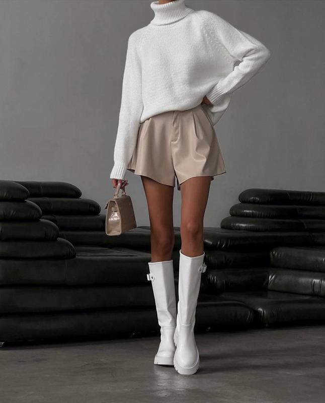 Новинка Стильні шортики з єко шкіри Модель 195 Розмір: с,м,л Ціна 475 грн Колір чорний, мокко і беж Тканина: якісна щільна єко шкіра,на утеплювачі (не тріскається )