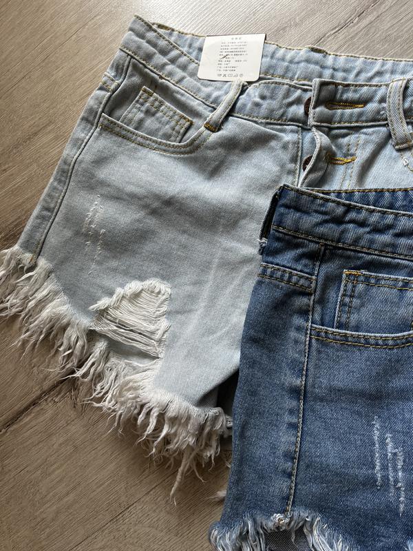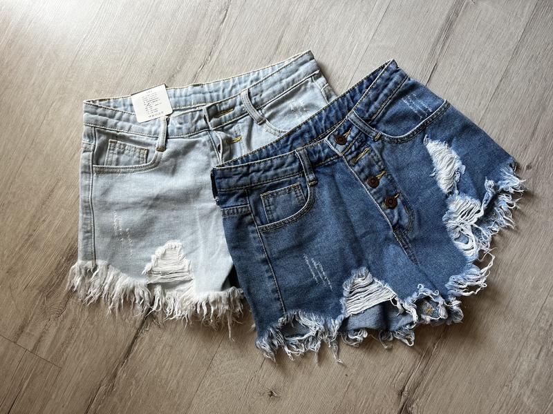 Очень крутые рваные шорты с высокой посадкой и на пуговицах в двух цветах Темные ( чуточку светлее чем на фото) размер S замеры : Талия 64 смСтегна 90 см Длина 27 см
