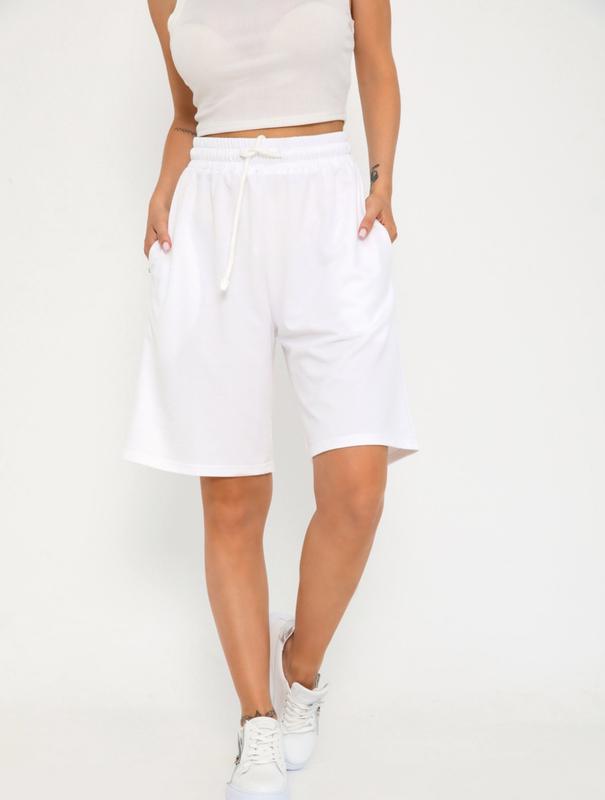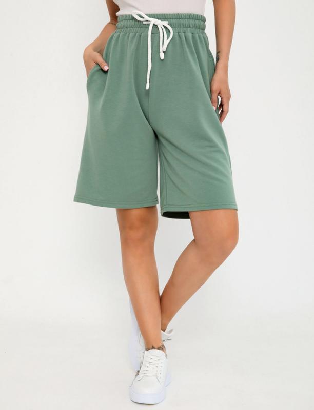 свободные шорты бермуды, выполненные из однотонной трикотажной двухнити. Модель с длиной выше колен и карманами. Изделие оснащено поясной резинкой с тесьмой.Размер: XL / 50Материал: ДвуниткаСостав: 50%, хлопок, 50%, полиэстр