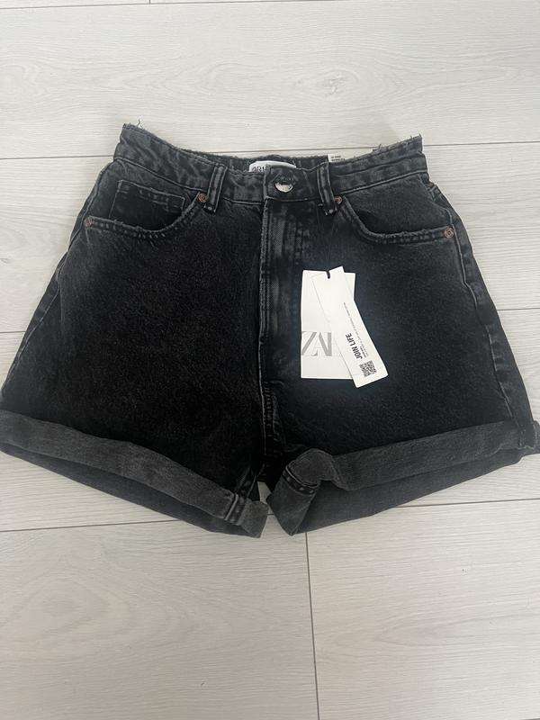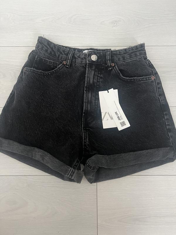 Шорты zara, шорты mom fit zara, черные джинсовые шорты zara