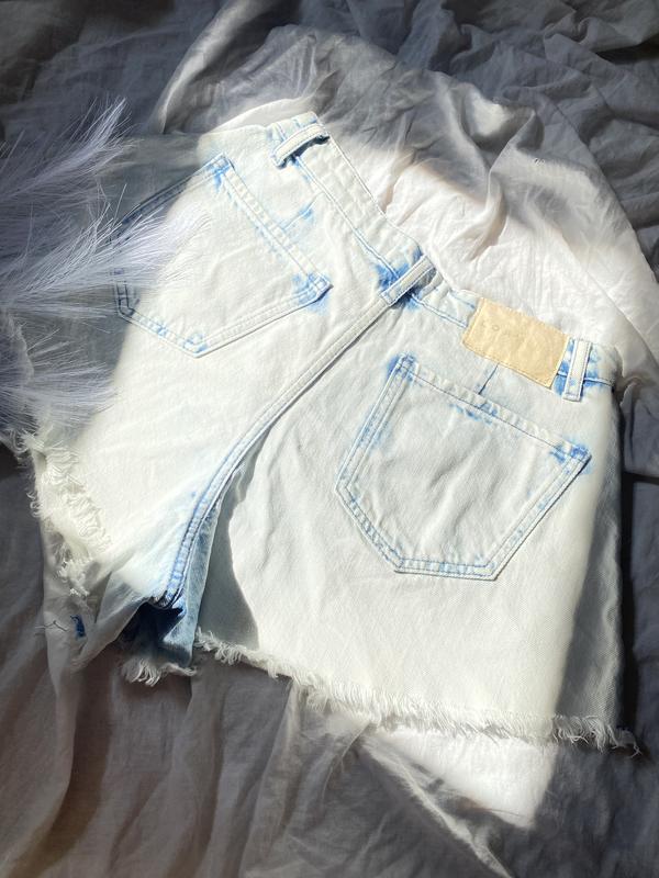 Женская бело-голубая короткая джинсовая юбка-шорты клеш размер m
