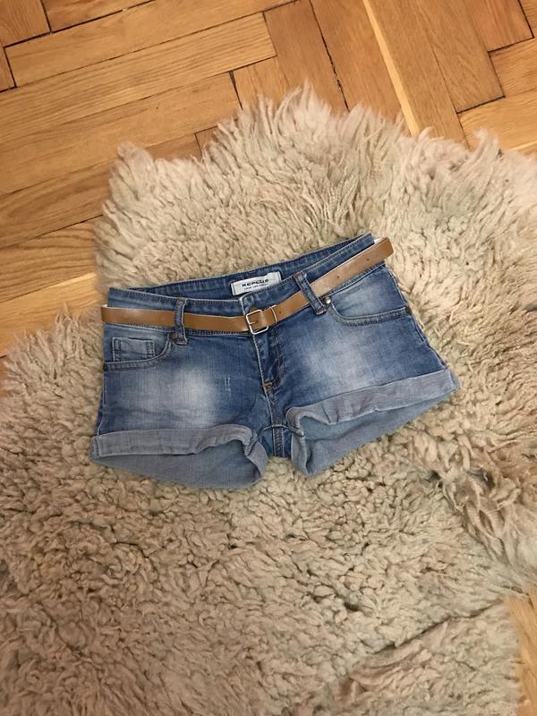 Женские джинсовые шорты короткие, состояние идеальное, в комплекте коричневый ремень, размер подойдет на ххс/хс (32 европейский) в составе котон