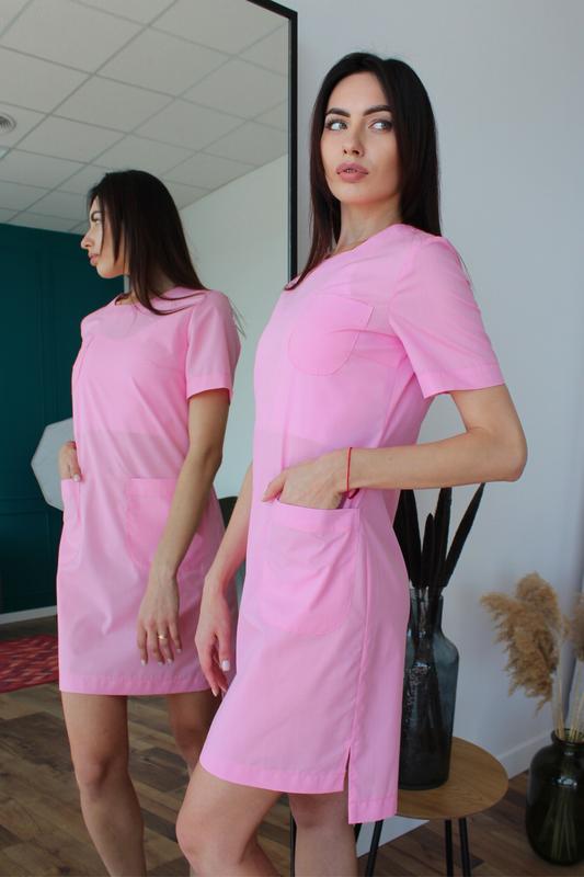 Медичне плаття тканина котон 65пэ% 35хл% розмір 40-58 Кольори : білий, ментол,червоний,блакитний,бузковий,синій,рожевий